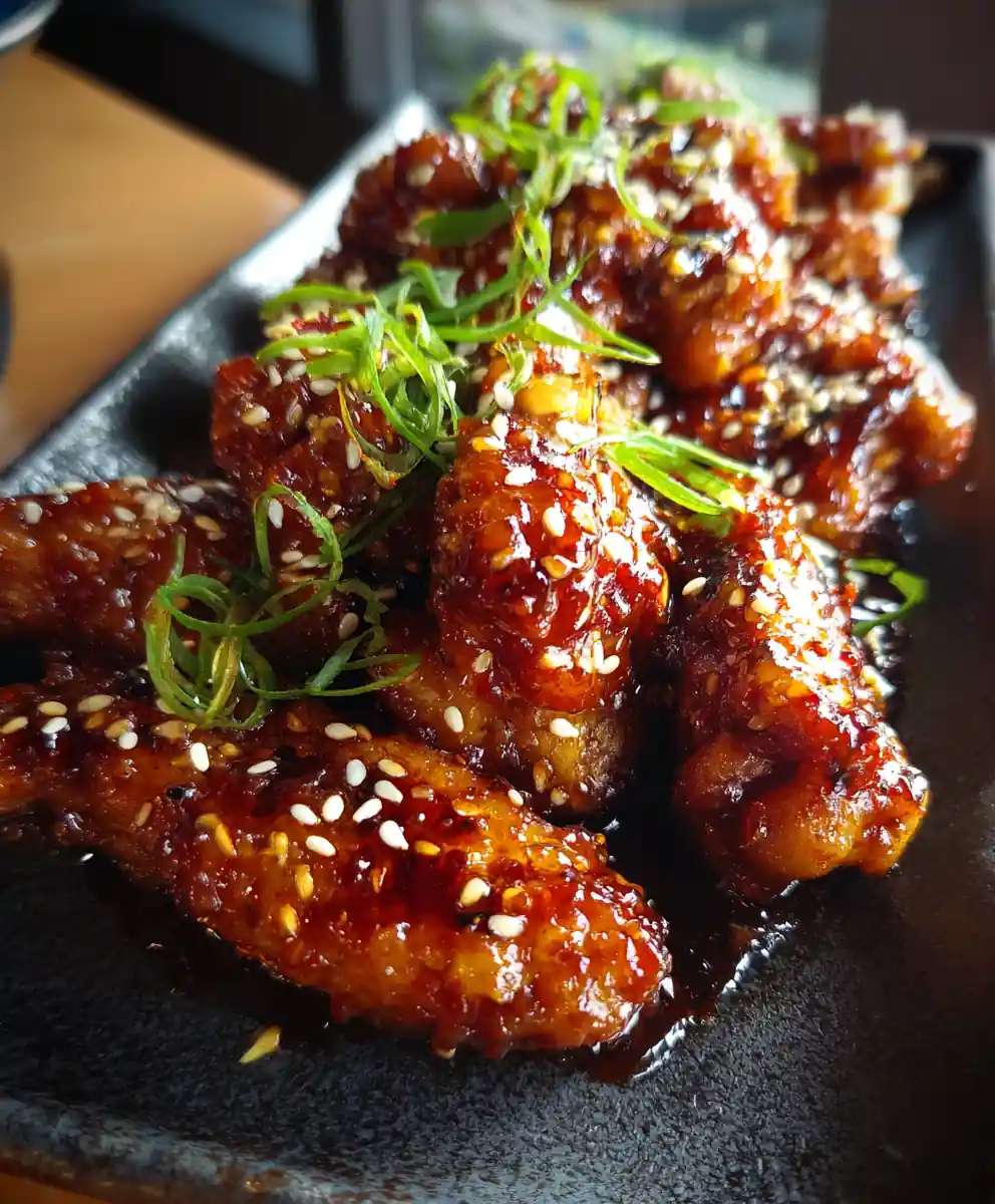 - Garnish and Serve: Arrange the sticky wings on a platter. Sprinkle generously with toasted sesame seeds and thinly sliced green onions. Serve immediately.