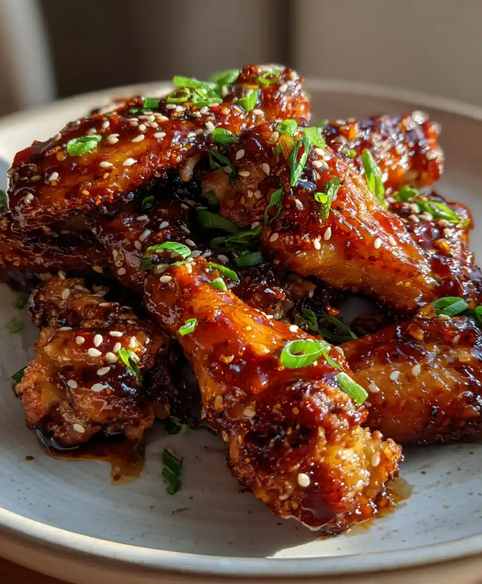 - Toss and Serve: Transfer the hot wings immediately to a large clean bowl. Pour the warm glaze over the wings and toss thoroughly. Arrange on a platter and garnish generously with toasted sesame seeds and sliced green onions before serving.