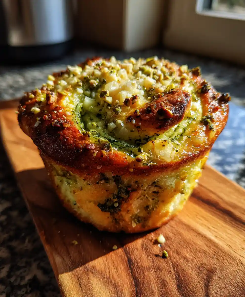 The swirling technique isn’t just for aesthetics; it also plays a role in the flavor distribution. By keeping the pesto somewhat separate from the main batter, you get pockets of intense basil-pistachio flavor in each bite. The contrast between the savory muffin base and the bright, herbaceous pesto is what makes these muffins so special. The fat content in the pesto also contributes to a more tender crumb.