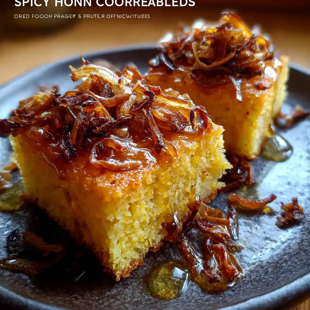 This recipe produces rich, tender cornbread elevated by a sweet and savory spicy honey glaze and crispy shallots.