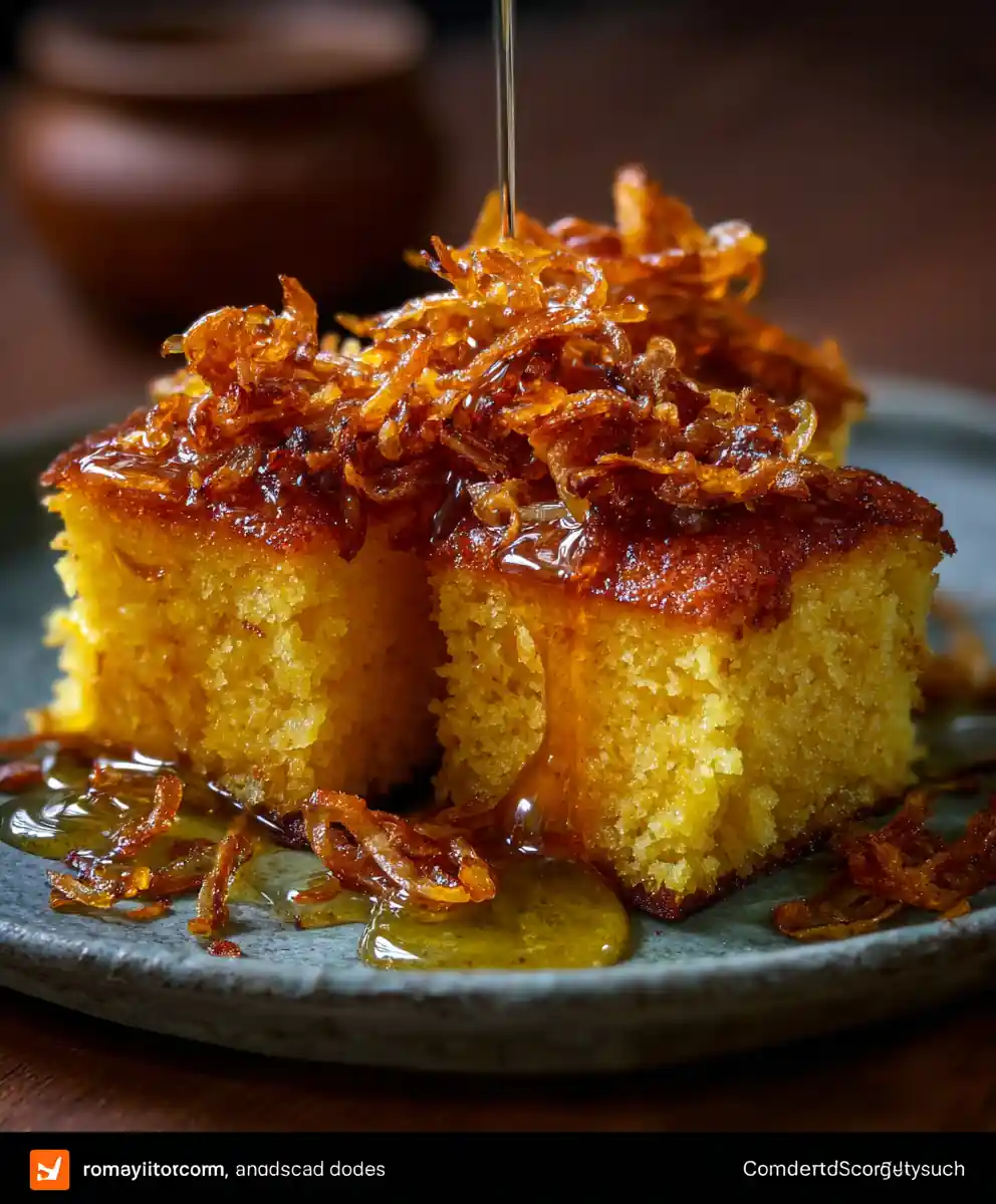 - Glaze and Garnish: As soon as the cornbread comes out of the oven, immediately and generously brush about two-thirds of the warm spicy honey glaze over the entire top surface, allowing it to soak in and create a glossy finish. Let the cornbread cool in the pan for 10-15 minutes before carefully transferring it to a cutting board and slicing it into squares. Arrange a warm square on a plate, drizzle with the remaining spicy honey glaze, and sprinkle with the remaining crispy shallots for the best corn bread recipe experience.