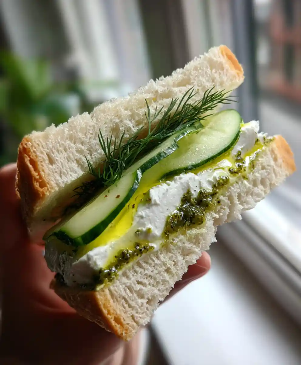 I think a truly great cucumber sandwich should be more than just a light snack; it should be a complete flavor experience. This version elevates the classic with a vibrant lemon-dill cream cheese spread and a savory green olive tapenade ribbon for an unforgettable flavor experience, offering a perfect balance of crisp cucumber and rich creaminess. This specific recipe for the best cucumber sandwich takes less than 20 minutes to assemble. The key to success here is preventing soggy bread by properly draining the cucumbers first. This outline shares all the tips and tricks for making a delicious, elegant cucumber sandwich every time.