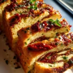 - 7. Cool and Serve: Remove the bread from the oven and transfer it to a wire rack to cool completely for at least 1 hour before slicing. This ensures the internal crumb sets properly. To serve this truly best Italian bread recipe in the world, slice crosswise to reveal the vibrant sun-dried tomato and basil swirl. Drizzle a touch of high-quality extra virgin olive oil over the cut surfaces for a glossy finish and enhanced aroma, showcasing the rich color contrast of the swirl within the golden crust.