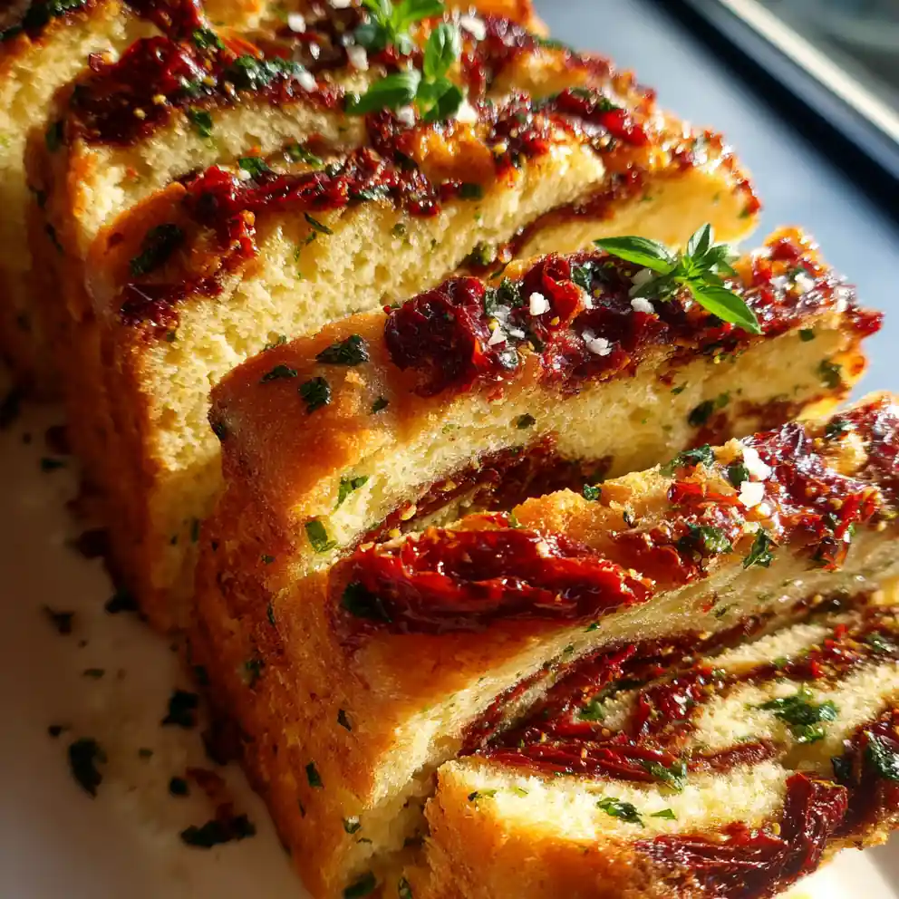 - Cool and Serve: Remove the bread from the oven and transfer it to a wire rack to cool completely for at least 1 hour before slicing. This ensures the internal crumb sets properly. To serve, slice crosswise to reveal the vibrant sun-dried tomato and basil swirl. Drizzle a touch of high-quality extra virgin olive oil over the cut surfaces for a glossy finish and enhanced aroma, showcasing the rich color contrast of the swirl within the golden crust.