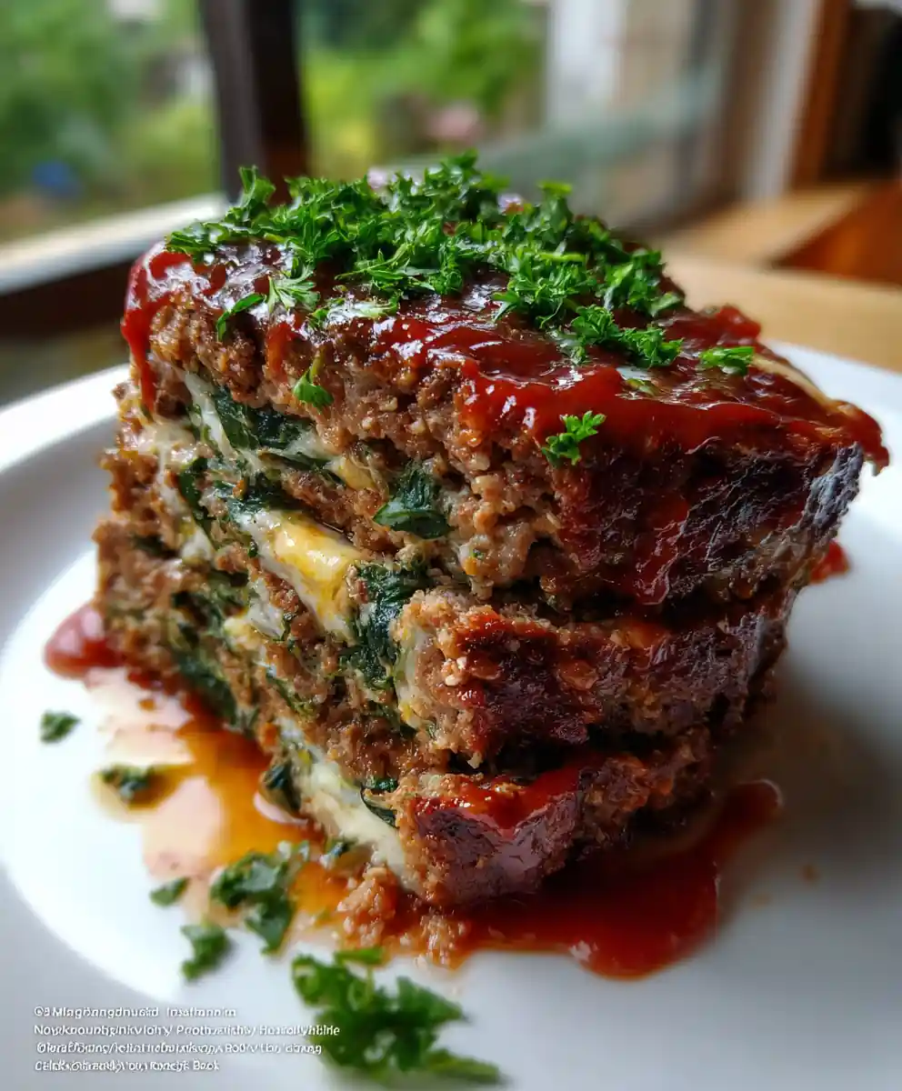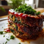 This meatloaf recipe with oatmeal is a comforting, hearty meal featuring moist, tender beef and a creamy, vibrant spinach and sun-dried tomato center, all topped with a sweet and tangy glaze. It’s designed to be simple to make and perfect for family dinners.