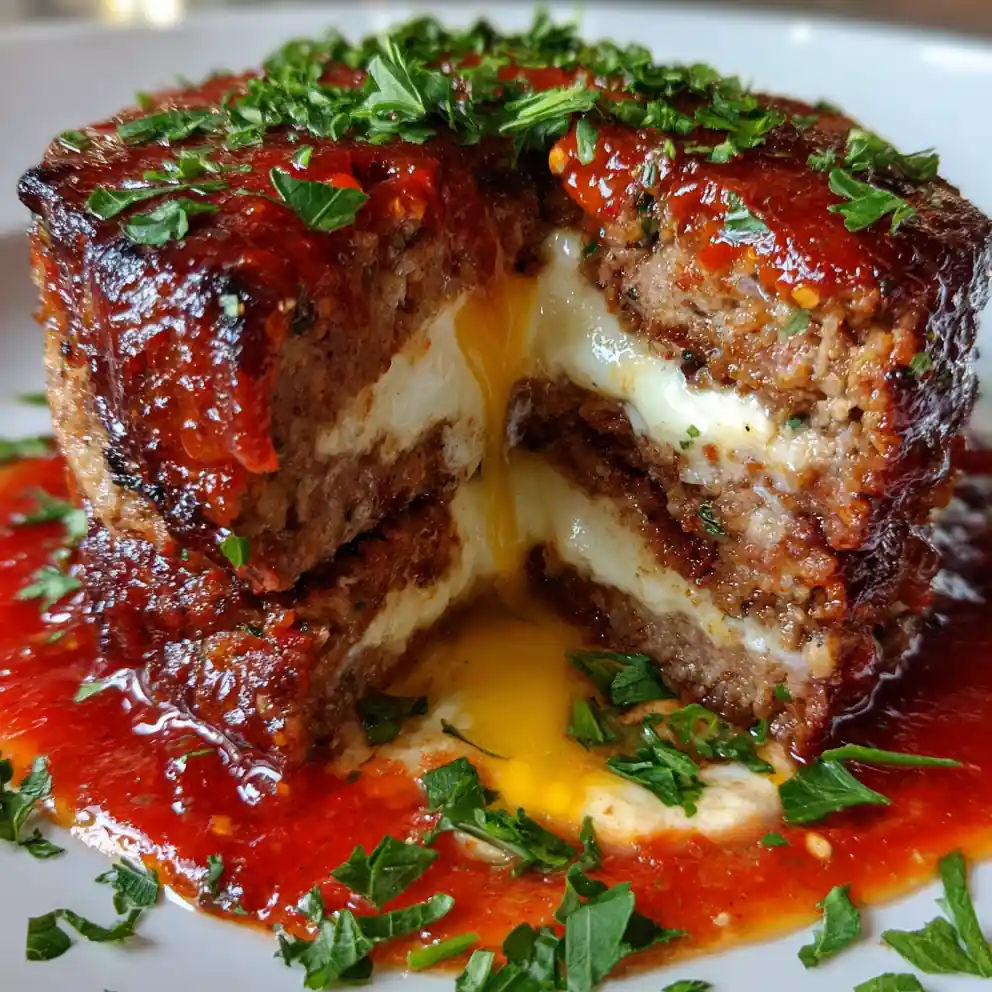 - Form Loaf with Cheese Center: Press half of the meatloaf mixture into a rectangle on parchment paper. Create a shallow trench in the center, add the mozzarella filling, and cover with the remaining meatloaf mixture. Seal the edges carefully to enclose the filling completely.