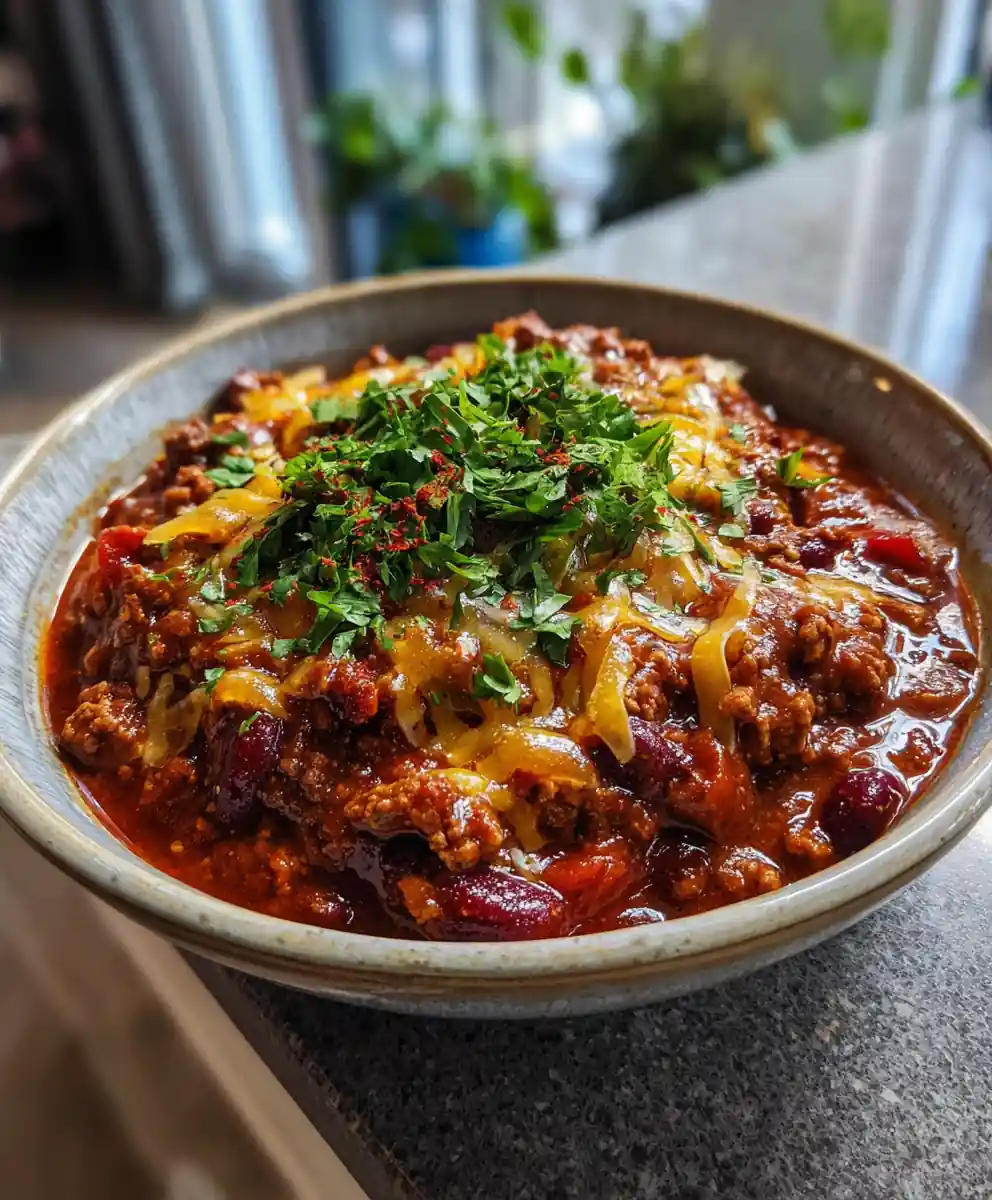 Fresh herbs provide a bright finish that cuts through the richness of the chili. Garnish immediately before serving for maximum freshness. If you dislike cilantro, use fresh parsley or green onions instead.