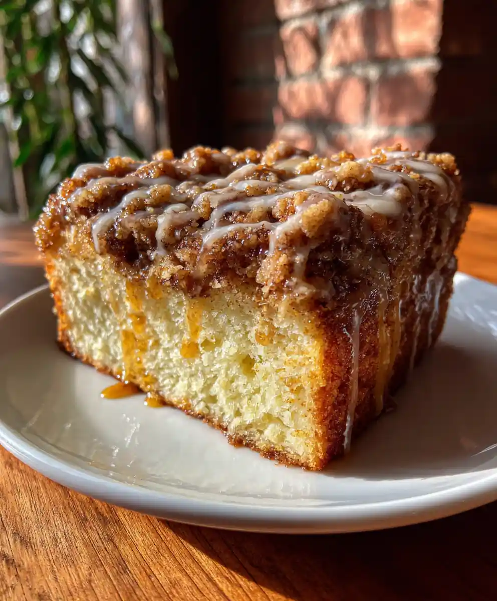 - Drizzle and Serve: Drizzle the maple drip generously over the warm coffee cake. Let it set for a few minutes until slightly firm before slicing and serving.