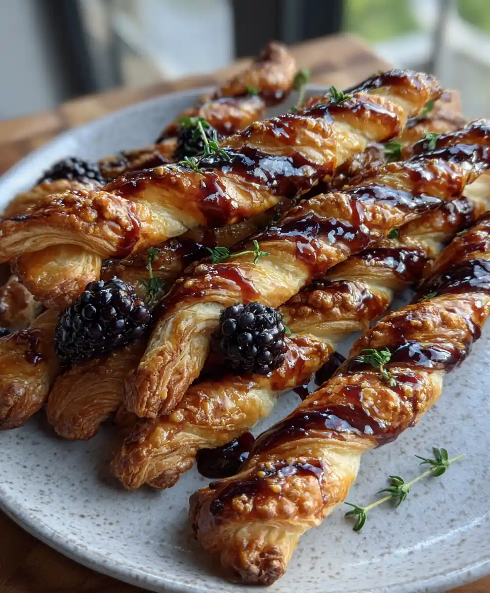 - Glaze & Garnish: Drizzle warm glaze over twists and garnish with blackberries and thyme.