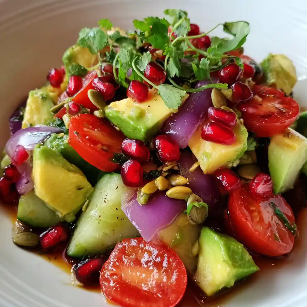 For best results, use ripe avocados and prepare the salad shortly before serving to prevent browning.