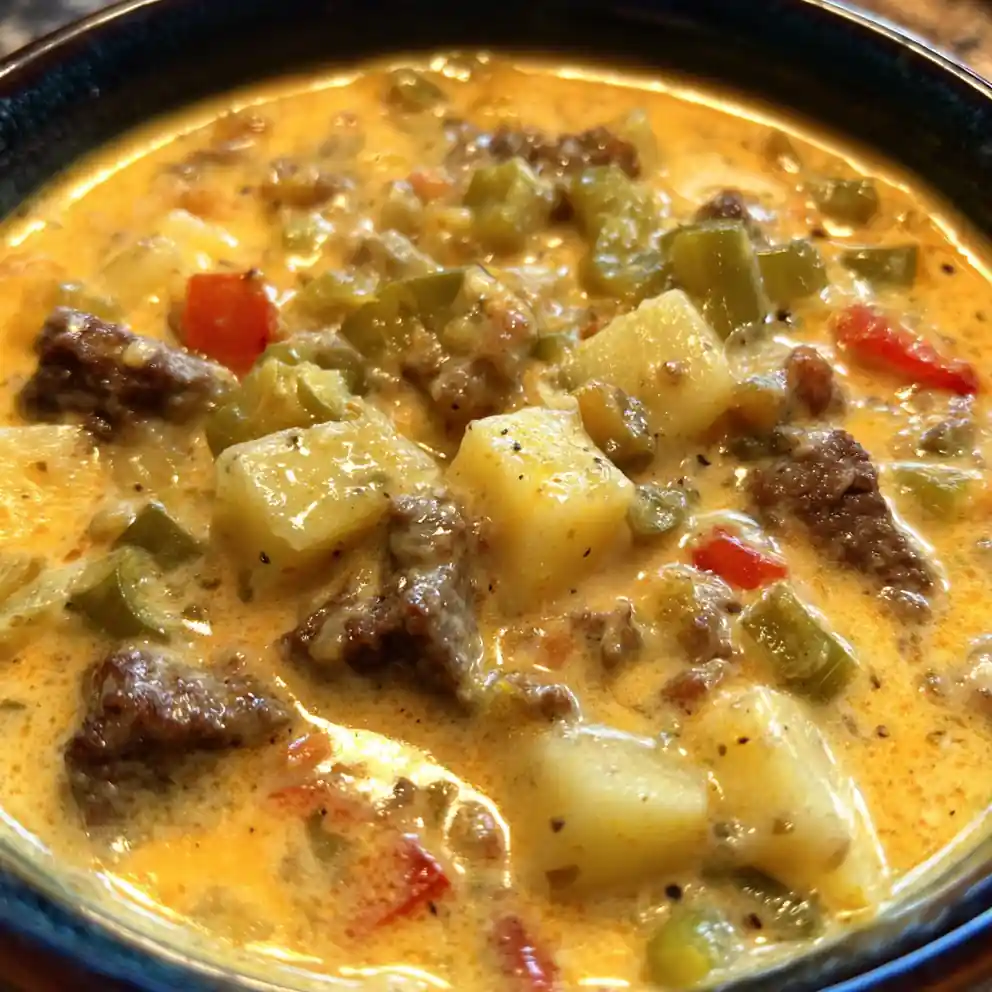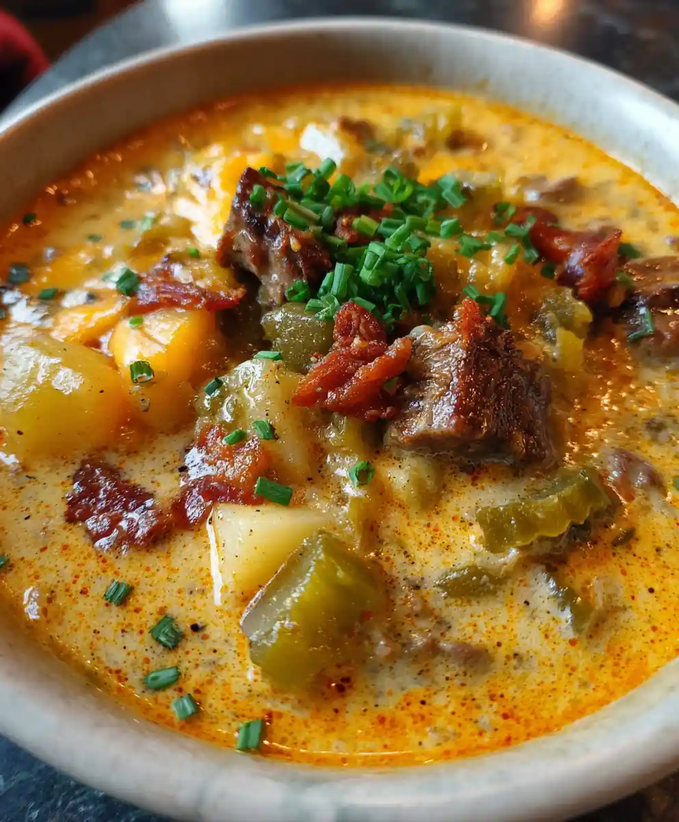 The aroma of savory beef and melting cheese, mingling with a hint of tangy pickle, fills my kitchen when this amazing cheeseburger soup recipe with its rich Cheddar bath and zesty pickle relish comes together. Itโs perfect for busy weeknights when I need a family-friendly dinner that feels like a treat, without hours of effort. My family asks for this satisfying meal regularly, loving its comforting flavors and how easy it is to enjoy. Get ready for a delicious journey!