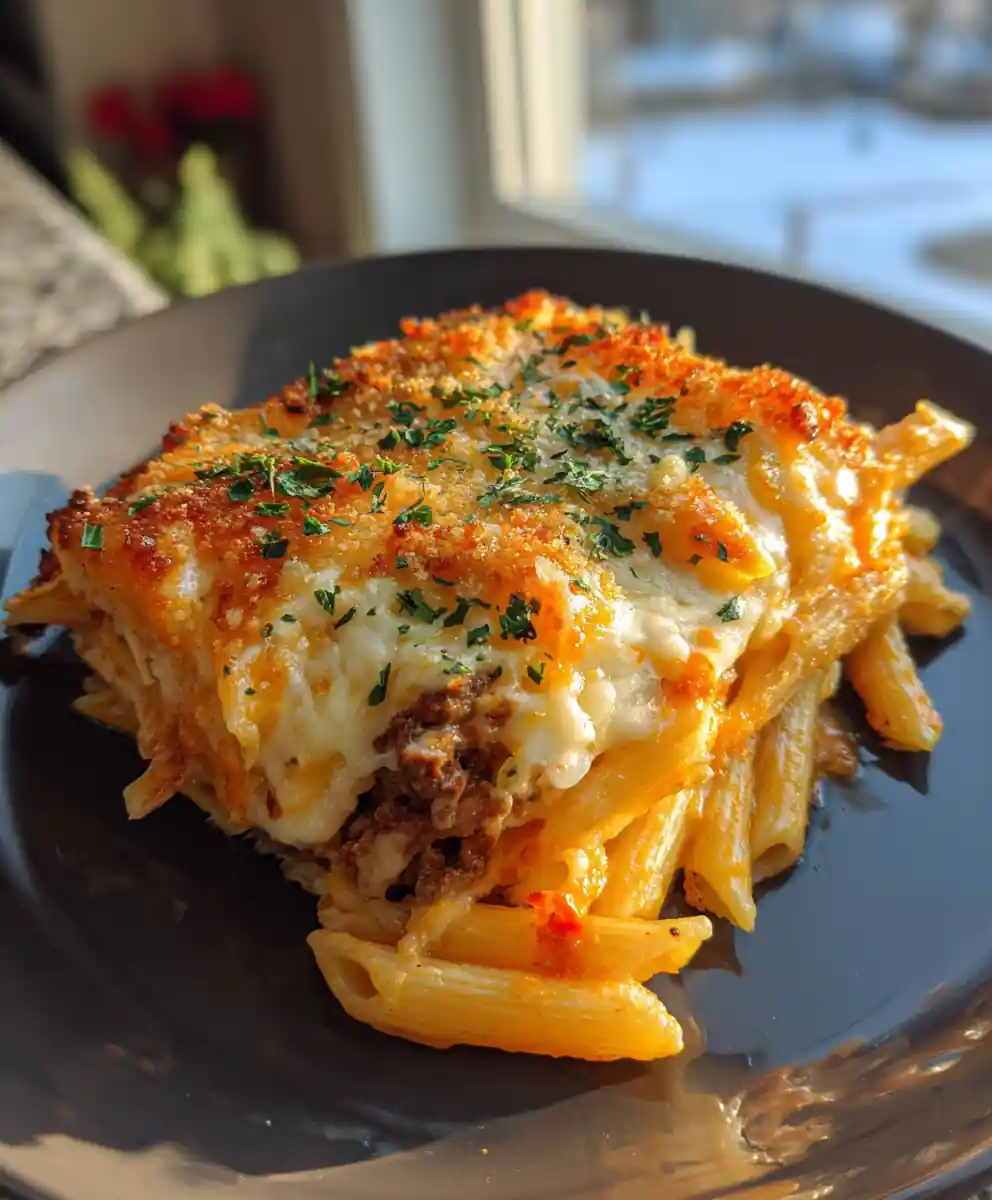 This cheesy penne recipe combines savory beef, a creamy roasted red pepper swirl, and melted cheese for a comforting and flavorful meal. It’s perfect for a weeknight dinner or special occasion.