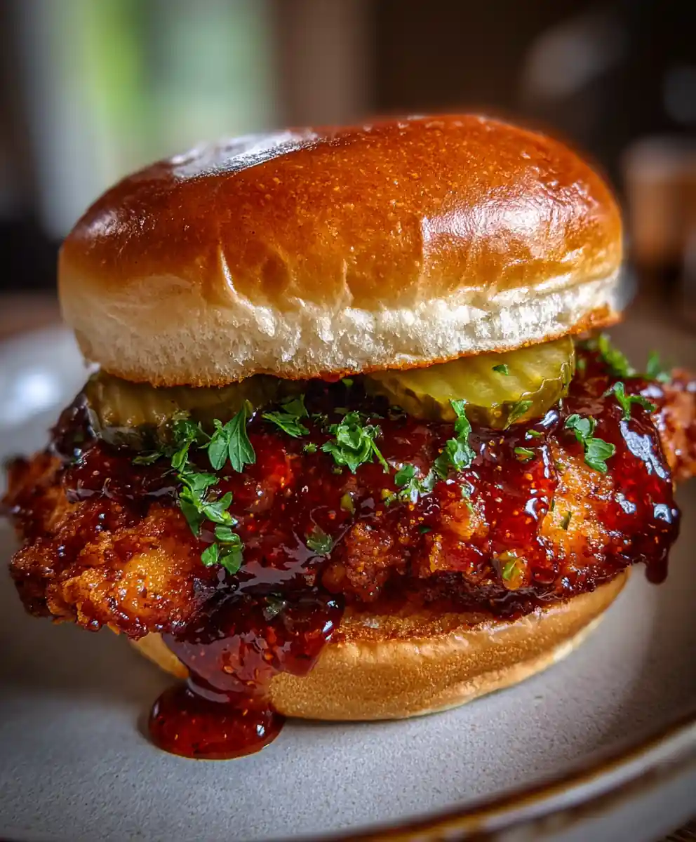 - Glaze and Assemble Sandwich: Immediately brush each hot fried chicken breast generously with the warm Smoky Honey Glaze. Serve immediately on warm, lightly toasted brioche buns with dill pickle chips and a sprinkle of freshly chopped parsley.