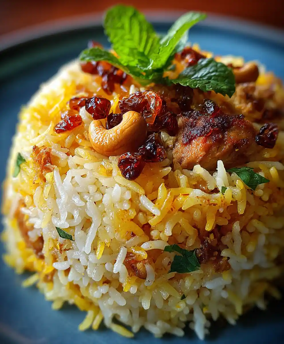 chicken biryani recipe with Saffron Raisin Crown