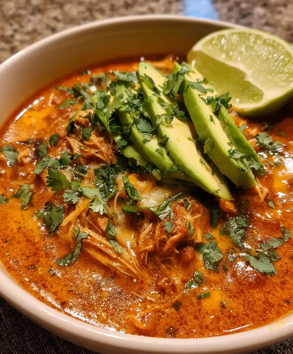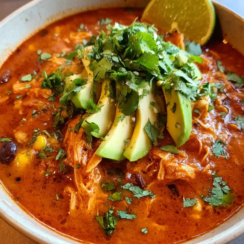 Chicken Enchilada Soup Recipe Fire Rojo Bowl With Avocado Ribbons 1761945168.138727