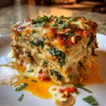 This Chicken Mushroom Spinach Lasagna features a creamy roasted red pepper béchamel sauce for a comforting and flavorful twist on a classic dish. It’s a delightful change of pace from traditional meat lasagna, perfect for family dinners or special occasions.