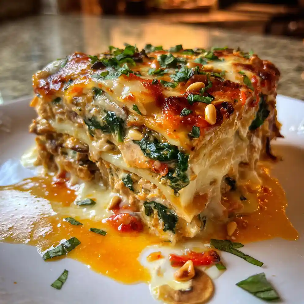 Chicken Mushroom Spinach Lasagna With Roasted Red Pepper Bechamel 1767858598.3784797