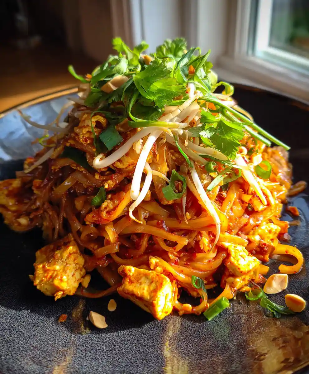 - Serve immediately: Serve the finished chicken pad thai immediately while hot. Garnish generously with crushed roasted peanuts and fresh cilantro leaves. Drizzle any remaining glossy sauce over the top for extra flavor.