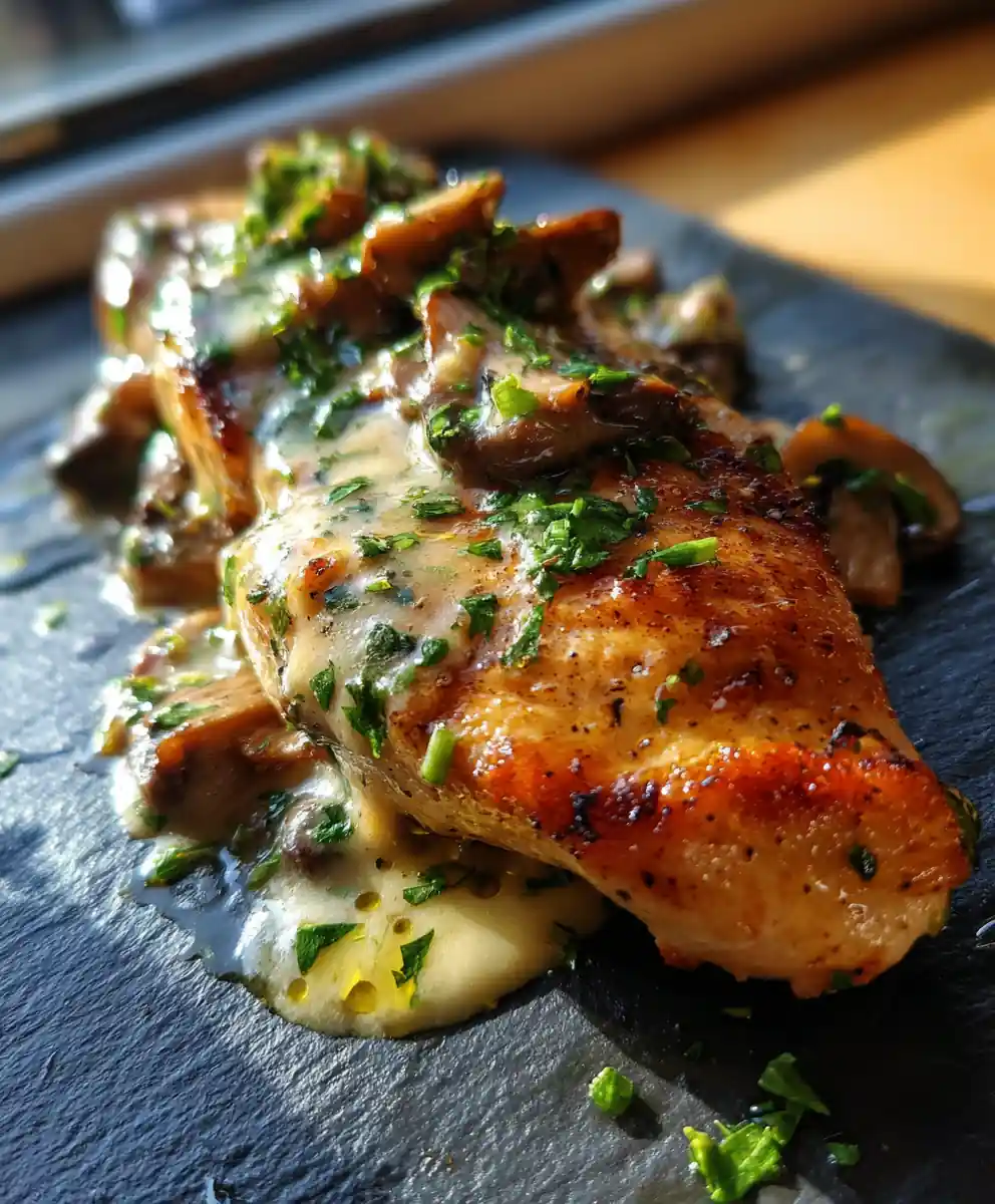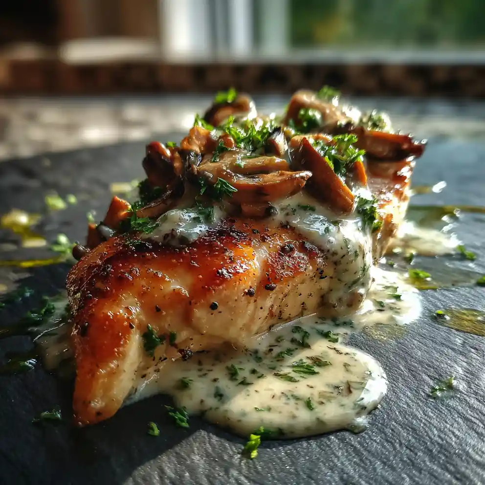 This recipe features tender pan-seared chicken breasts smothered in a rich, creamy mushroom glaze. It’s an elegant yet easy dish perfect for a weeknight meal or special occasion.