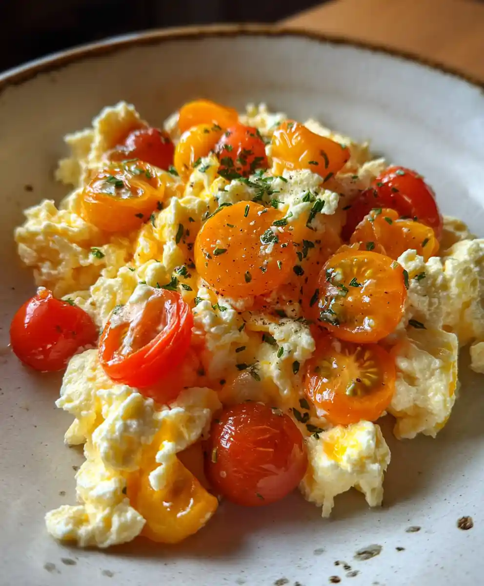 This cottage cheese eggs recipe with cherry tomato scatter is a creamy, protein-packed dish perfect for a quick breakfast or easy dinner. It offers a delicious and nourishing solution for busy families, ready in minutes with fluffy, flavorful eggs.