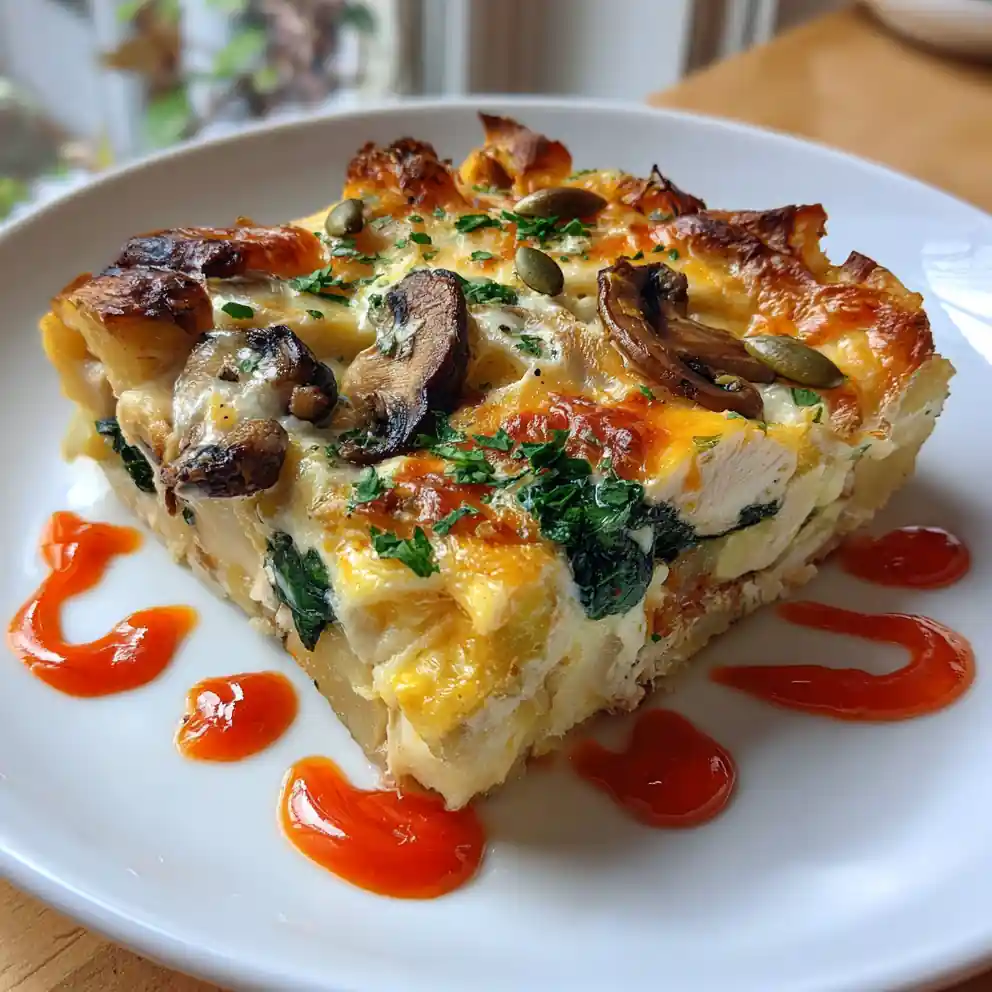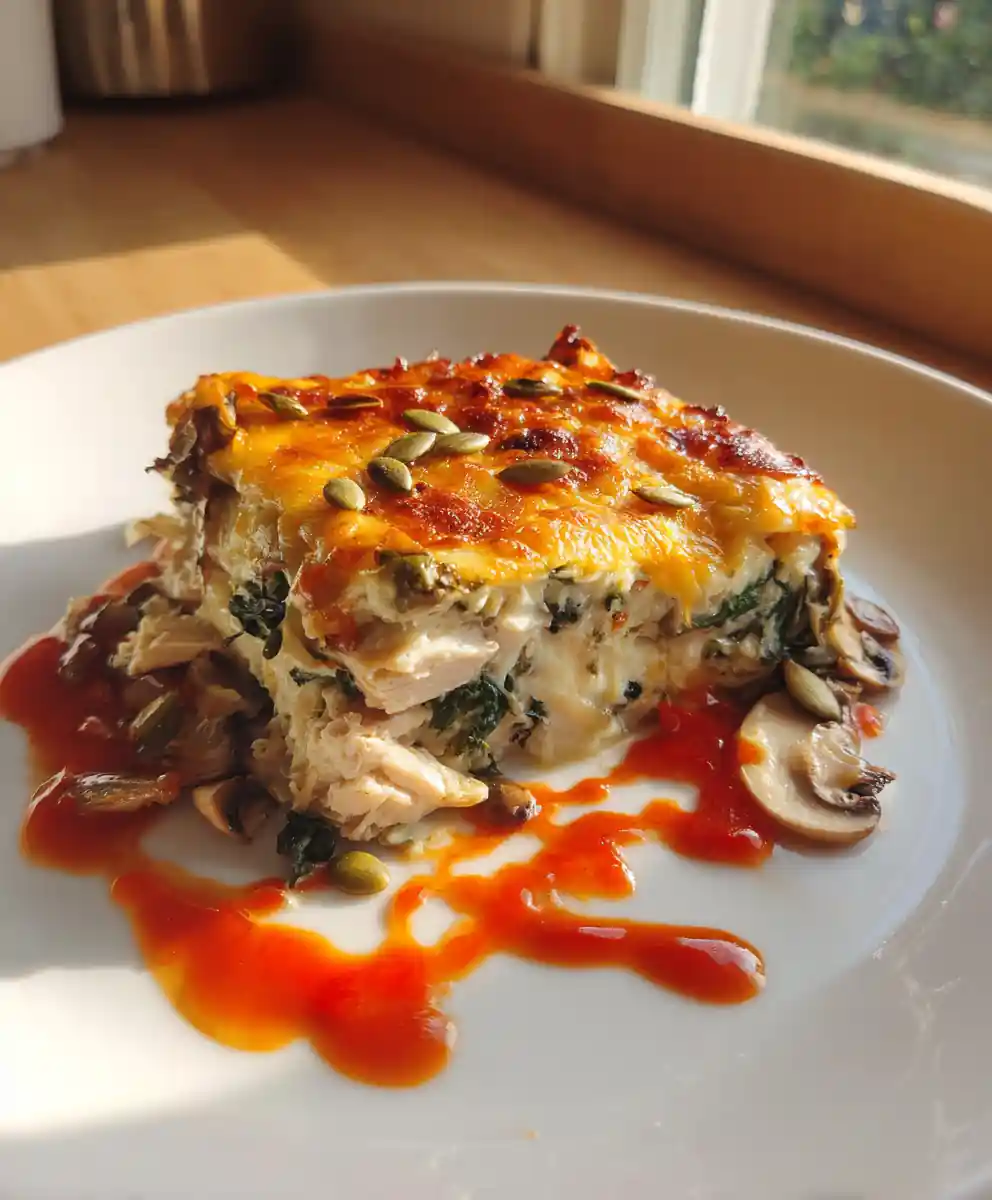 Feel free to customize this casserole to your liking! You can substitute the chicken thighs with chicken breast (though thighs are more flavorful). Different cheeses, like Gruyรจre or Monterey Jack, would also work well. For a vegetarian version, omit the chicken and add more mushrooms or other vegetables like broccoli or zucchini. If you donโ€™t have pumpkin seeds, toasted pine nuts or chopped walnuts make a great garnish.