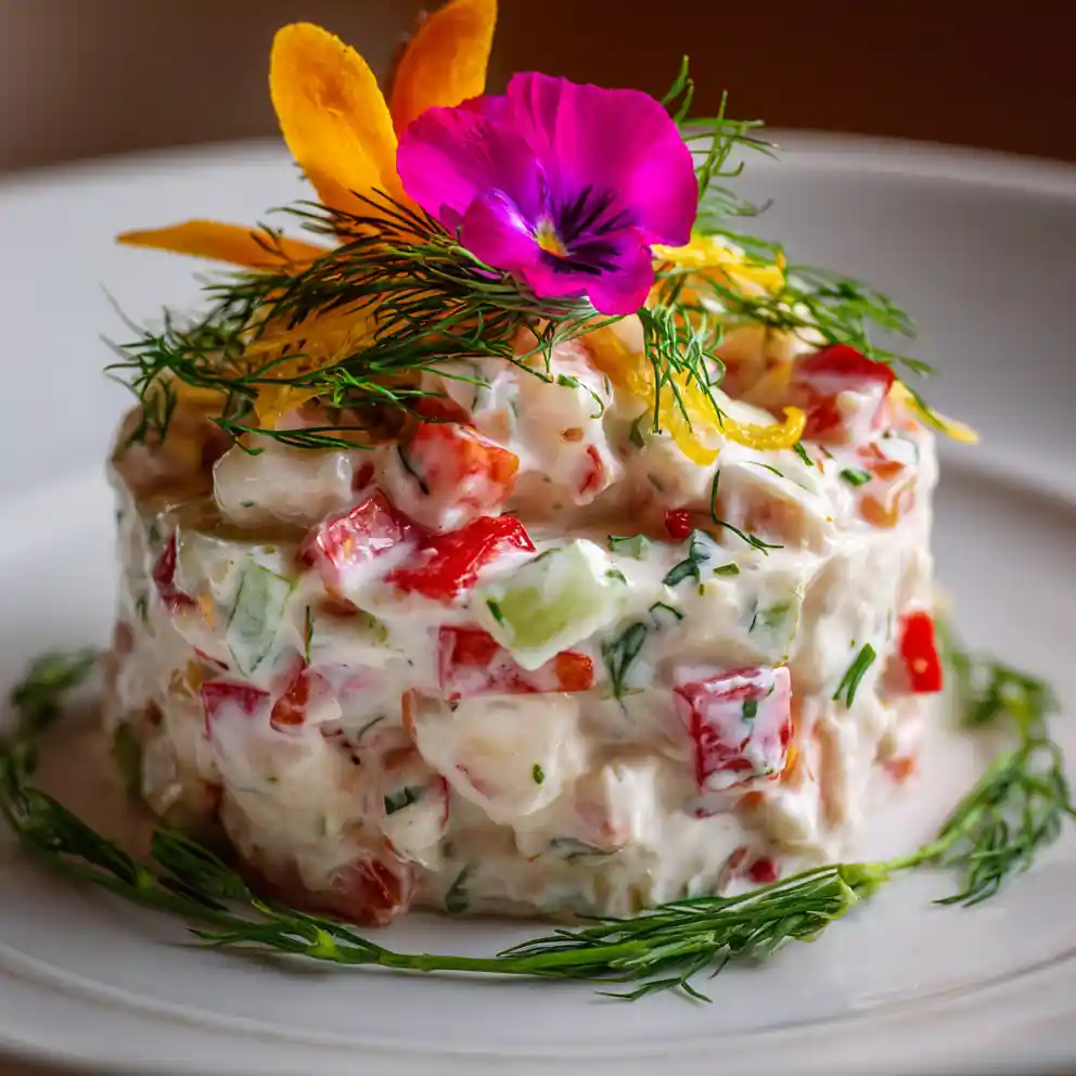 This Creamy Seafood Salad with Imitation Crab is a light yet satisfying dish, blending tender seafood, crisp vegetables, and a tangy dressing. It’s a quick and easy recipe perfect for lunch, appetizers, or potlucks.