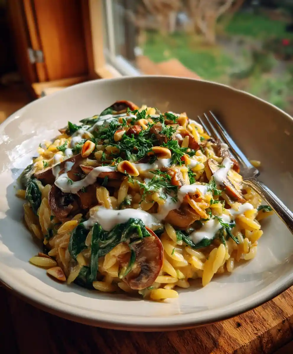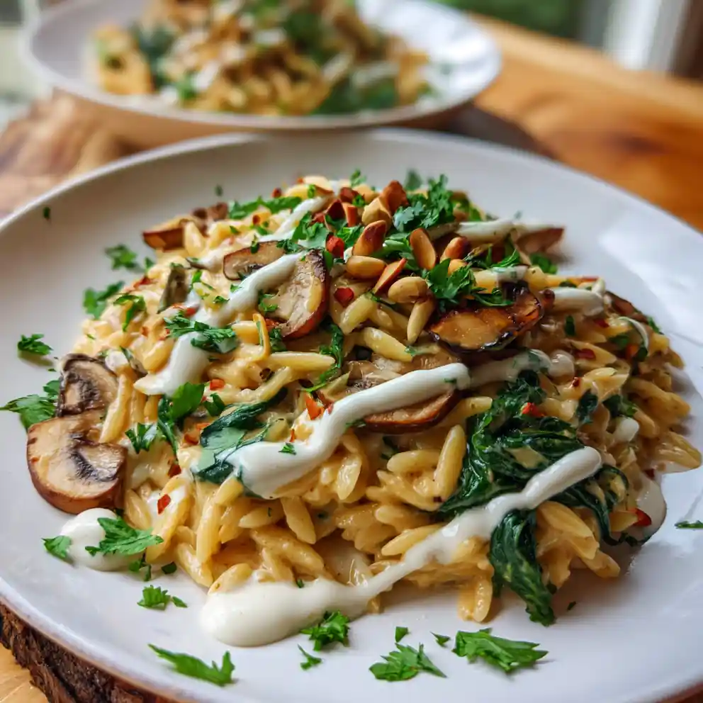 This Creamy Smoked Paprika Orzo with Spinach and Mushrooms is a comforting vegetarian meal featuring a rich cashew cream sauce, earthy mushrooms, and vibrant spinach. It’s a flavorful and satisfying dish perfect for a weeknight dinner.
