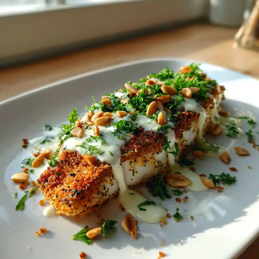 This recipe features flaky white fish coated in a flavorful almond-za’atar crust and drizzled with a tangy yogurt-lemon sauce, offering a taste of the Mediterranean in under 30 minutes.