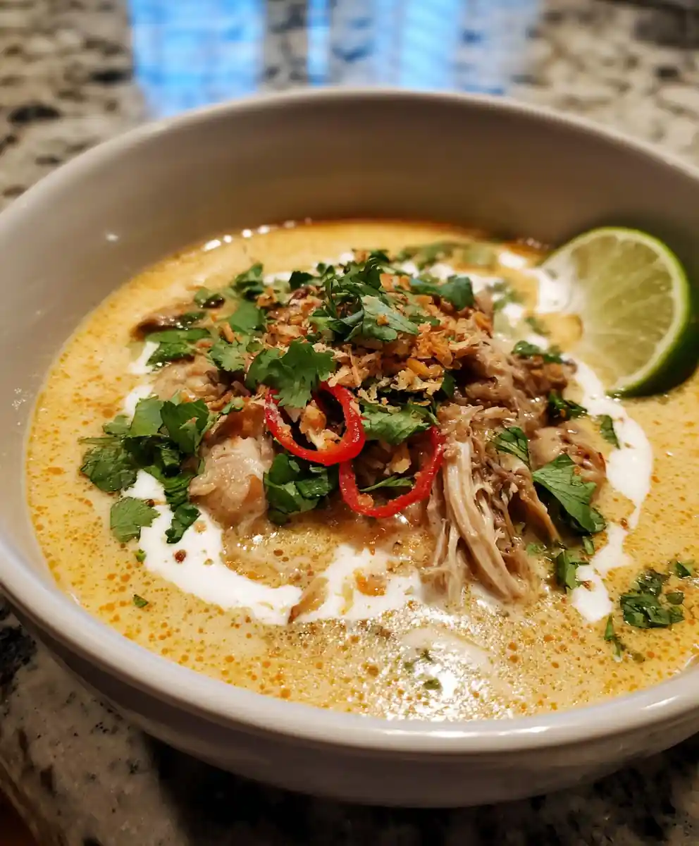 This Crockpot Thai Coconut Chicken Soup is a flavorful and easy-to-make dish featuring tender chicken, fragrant spices, and a stunning lime-infused coconut cream swirl. It’s perfect for a cozy night in or a delightful dinner party.