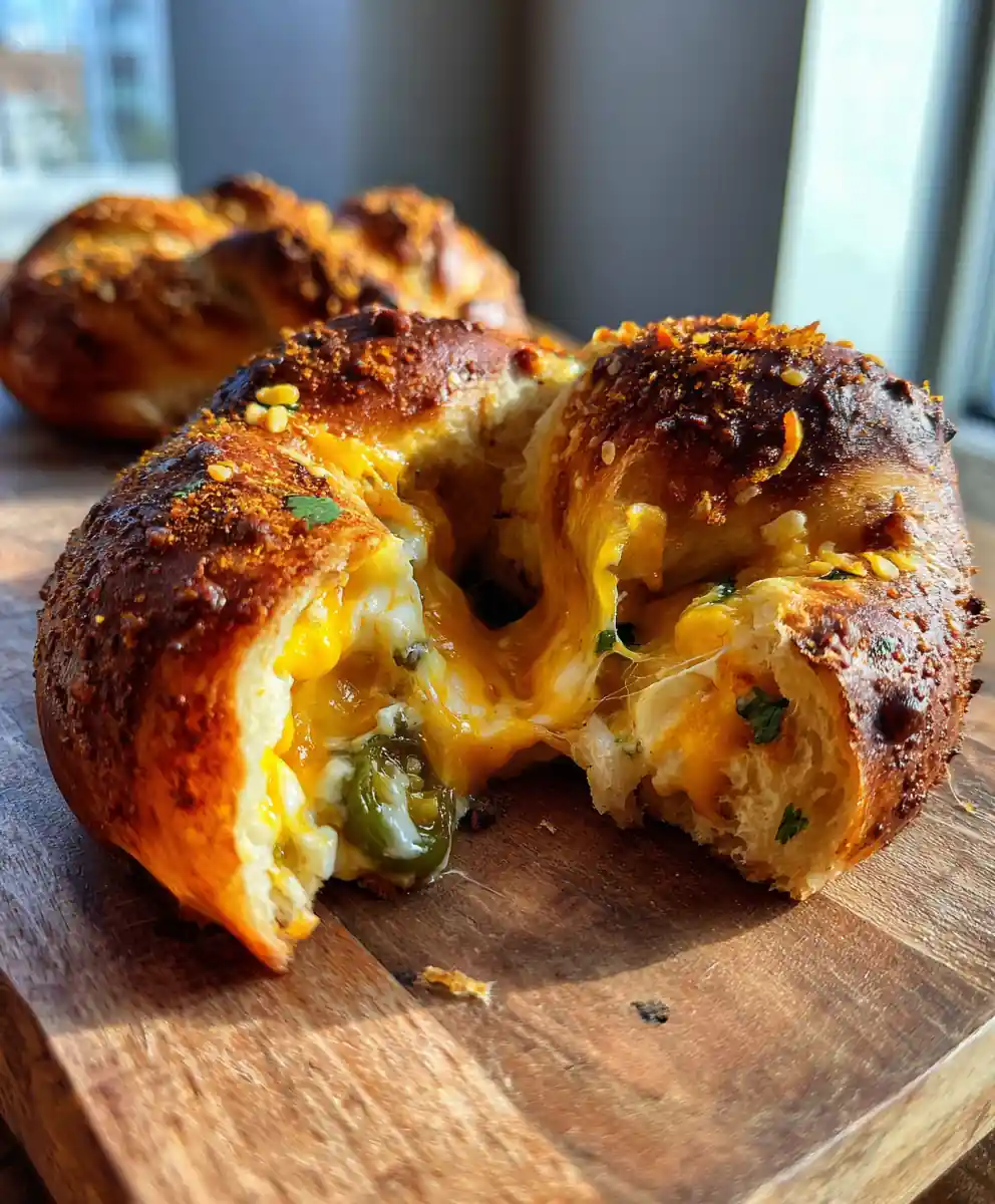 This easy soft pretzel recipe yields perfectly golden, chewy pretzels with a soft interior, featuring a savory molten jalapeño cheddar filling. It’s a delightful homemade snack perfect for family activities.