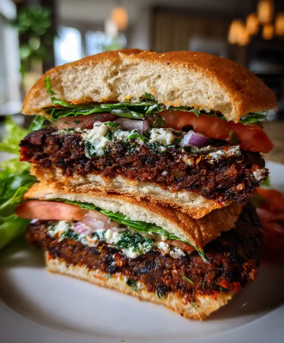 We’ve created the perfect solution for a truly special weeknight dinner: a rich, smoky black bean patty stuffed with a creamy, melty feta and spinach core. This easy veggie burger recipe is designed to be simple enough for a quick meal but impressive enough for company. You’ll get all the comfort food appeal without all the effort, resulting in a burger that holds its shape and delivers on flavor every time. The secret center and smoky harissa kick make this a family favorite that’s anything but boring.