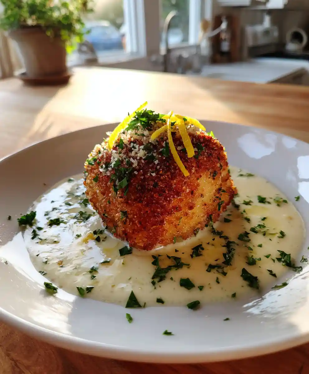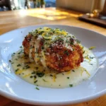 - Plate and Garnish: Plate each chicken pillow on a clean white plate. Spoon a generous pool of the lemon-infused Parmesan cream onto the plate, then swirl the sauce with the back of a spoon to create a decorative vortex. Place the chicken pillow atop the sauce, drizzle a thin stream of any remaining cream around the edge, and finish with a sprinkling of extra grated Parmesan, chopped parsley, and bright lemon zest ribbons for contrast.