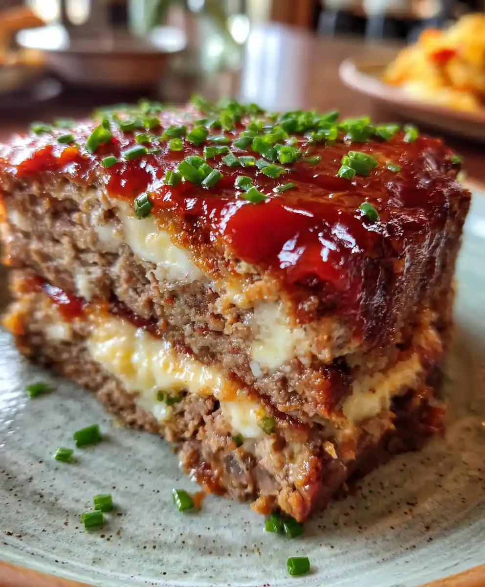 - Rustic Presentation: Slice the meatloaf thick to showcase the smoky cream cheese center. Drizzle extra glaze or pan juices over the top before serving to enhance moisture and flavor. Garnish with additional fresh chives for color.
