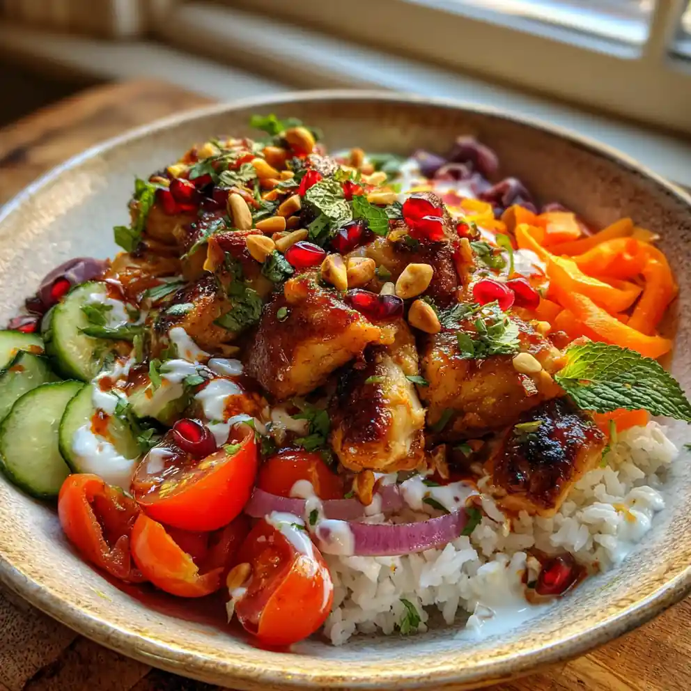 Enjoy a lighter take on the classic Greek gyro with these vibrant chicken gyro bowls, featuring pomegranate-glazed veggies and a refreshing yogurt sauce. This recipe delivers all the satisfying flavors of a gyro in a healthy and colorful bowl.