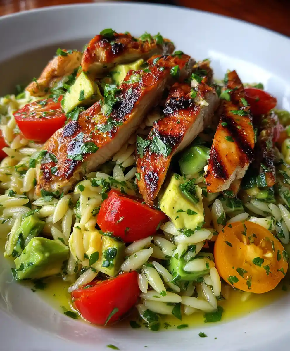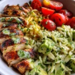 Looking for a light yet satisfying meal that’s bursting with fresh flavors? This Grilled Chicken Orzo Salad with Avocado is the perfect choice! Tender grilled chicken, perfectly cooked orzo pasta, and creamy avocado come together in a vibrant salad tossed with a zesty lemon-herb dressing. It’s ideal for a summer lunch, a light dinner, or even a potluck contribution. This recipe balances protein, healthy fats, and complex carbohydrates for a meal that will keep you feeling energized and satisfied. Get ready to experience a delightful combination of textures and tastes!