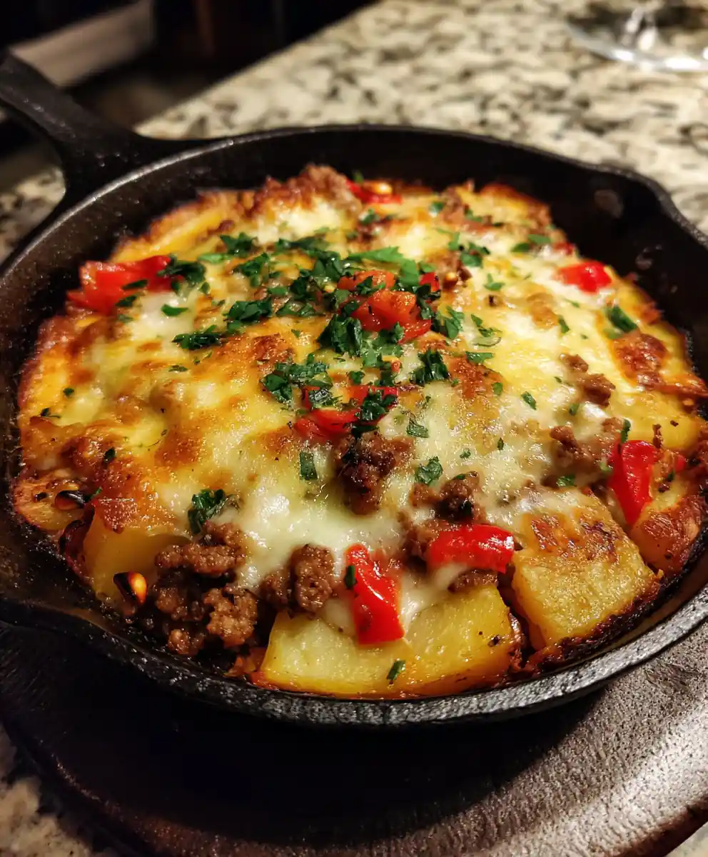 This Ground Beef and Potato Skillet is a hearty, flavorful, and easy one-pan meal featuring savory beef, tender potatoes, and a creamy smoked paprika cheese swirl. It’s comfort food elevated for a cozy night in.