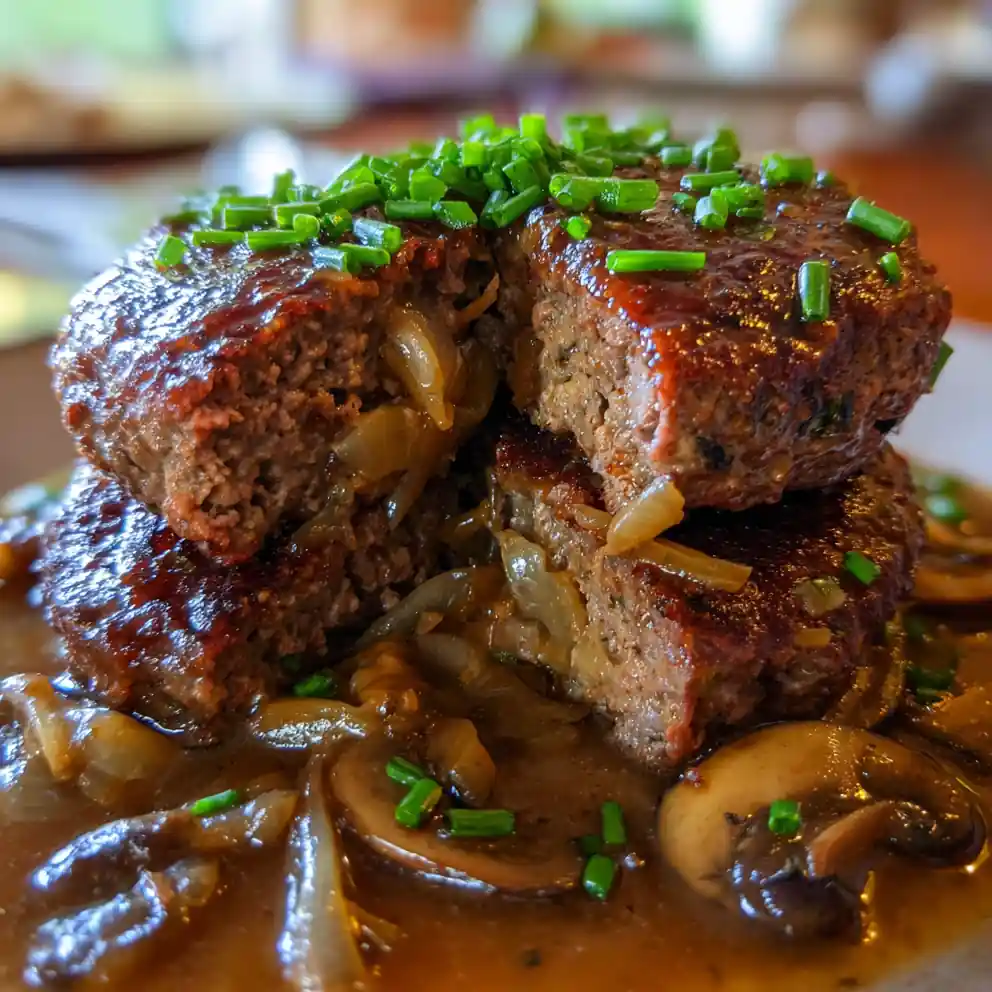 6. Simmer and Serve: Carefully return the seared patties to the gravy. Reduce heat to low, cover, and simmer for 10โ€“15 minutes, or until patties are cooked through (internal temperature reaches 160ยฐF or 71ยฐC). Serve immediately with extra gravy spooned over top.
