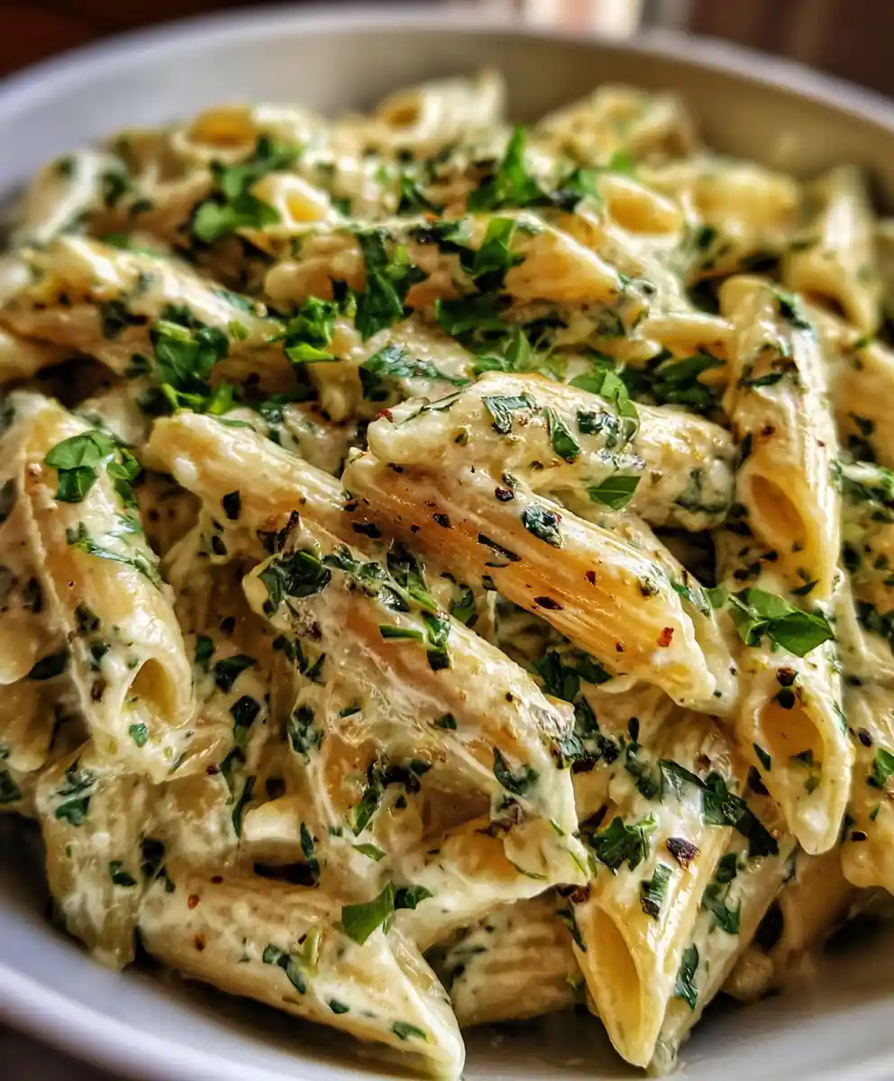 - Combine & Finish: Toss pasta with sauce, then fold in basil and parsley.