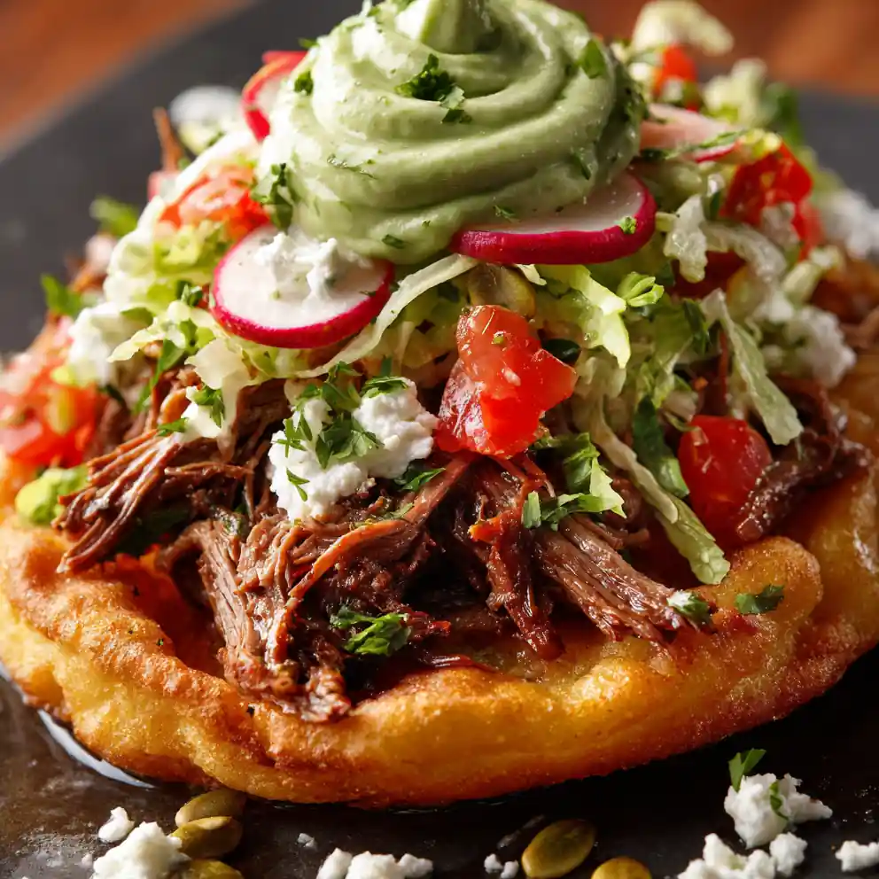 The taco filling can be made a day ahead and stored in the fridge for enhanced flavor. Ensure oil is hot enough (350-375F (175-190C)) when frying the bread to prevent it from becoming greasy. For shortcuts, use pre-made flatbreads or store-bought fry bread mix, or make the filling in a slow cooker.