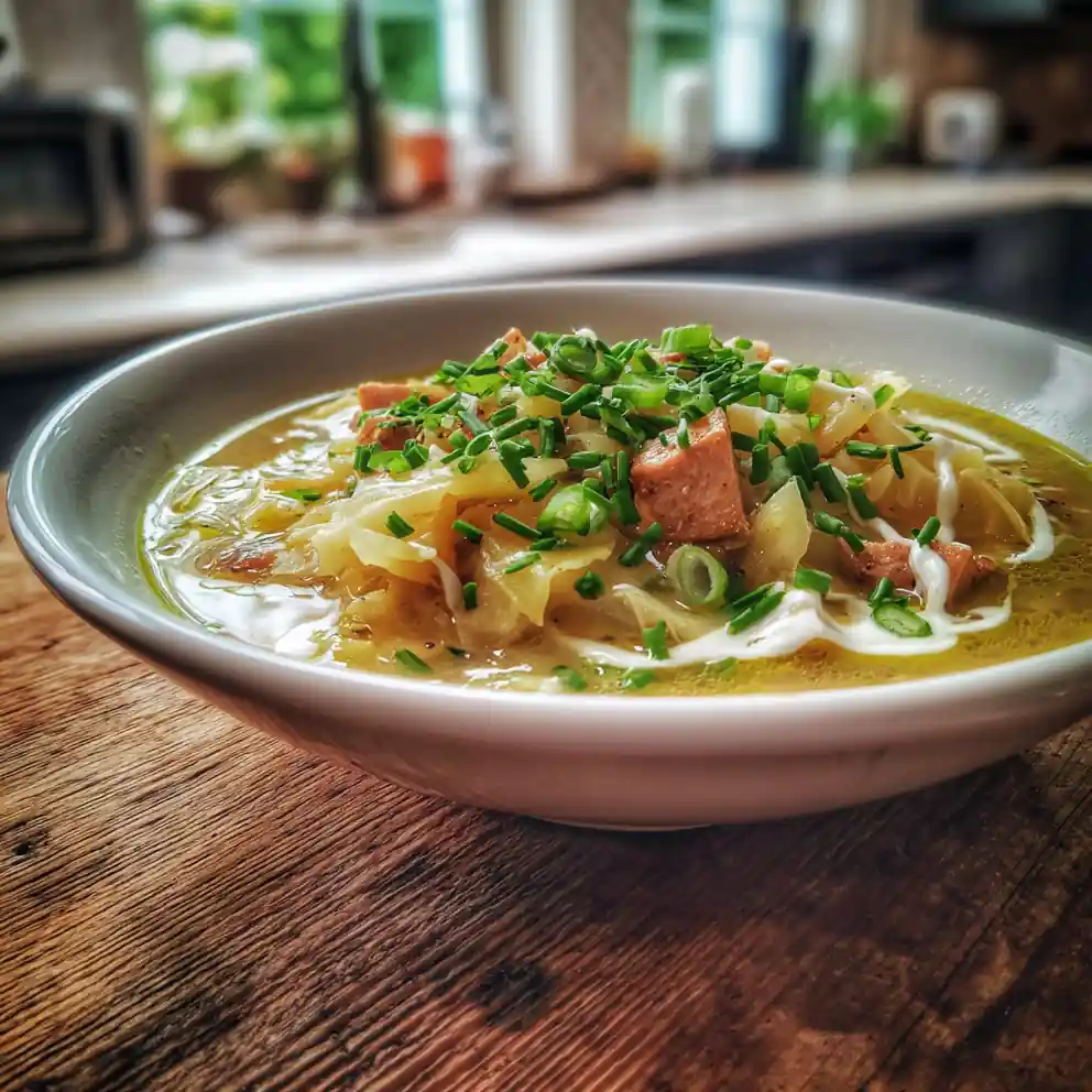 - Simmer Soup: Add cabbage, potatoes, thyme, bay leaf, and broth; simmer for 20-25 minutes.