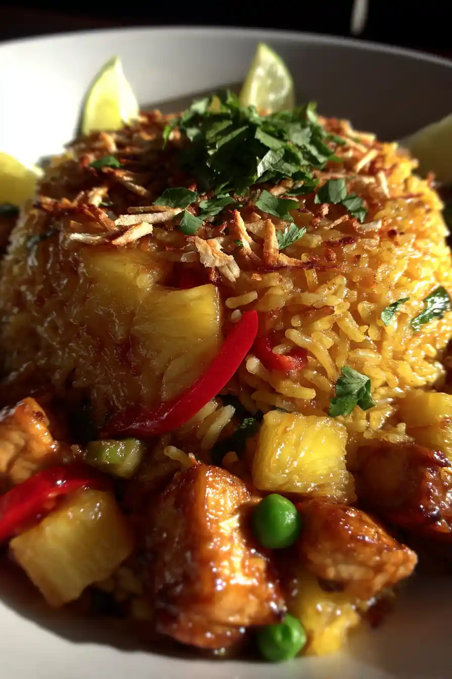 This Irresistible Pineapple Chicken and Rice is a flavorful and easy one-pan meal combining tender chicken, fragrant jasmine rice, sweet pineapple, and a vibrant blend of seasonings. It’s a delightful balance of sweet, savory, and slightly spicy, perfect for a weeknight dinner.
