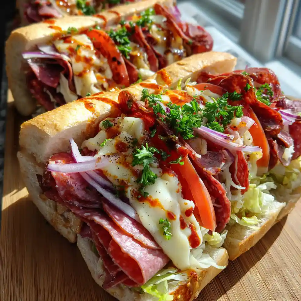 This recipe creates a hearty Italian hoagie that tastes like a high-end deli version. The key ingredient is a vibrant roasted red pepper vinaigrette that adds smoky flavor to every layer.