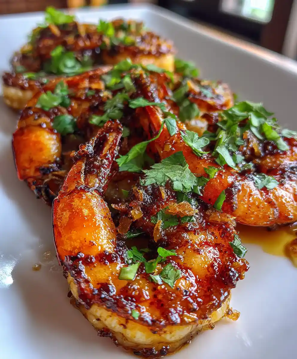 5. Plate and Serve: Arrange the cooked jerk shrimp on a warm plate. Generously drizzle the warm Tamarind-Lime Glaze over the shrimp, allowing it to pool slightly. Scatter the golden, crispy shallots evenly over the shrimp for wonderful texture and visual appeal. Finish with a sprinkle of fresh, vibrant green chopped cilantro. Serve immediately with lime wedges on the side for an extra burst of freshness.