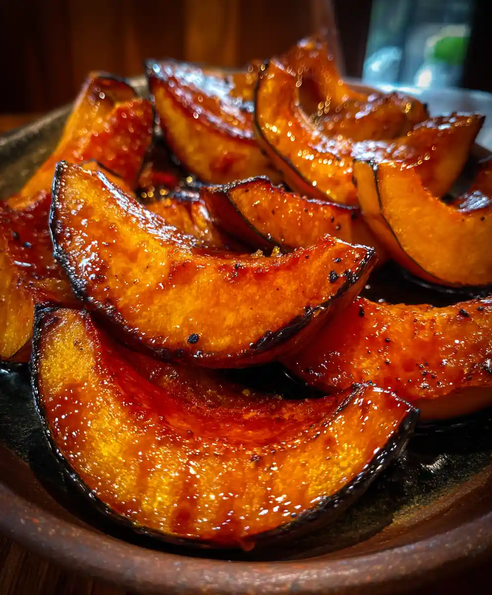 - Glaze and Finish: Pour the prepared glaze evenly over the roasted kabocha squash on the sheet pan, toss gently to coat every piece. Return the glazed kabocha squash to the oven for another 10-15 minutes, or until the glaze is bubbling and slightly thickened, clinging beautifully to the squash. The finished squash will be tender but hold its shape, with a glossy, reduced glaze. If the glaze looks too thin, you can add a pinch of cornstarch slurry (0.5 tsp cornstarch mixed with 1 tsp water) before returning to the oven. For extra crispness, air fry the glazed squash for a few minutes at the end instead of returning to the oven.