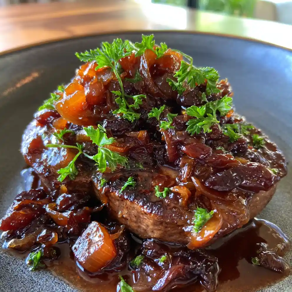 - Finish and Serve: Transfer hot, seared lamb liver to plates. Spoon warm compote generously over liver. Sprinkle chopped parsley for color and freshness.