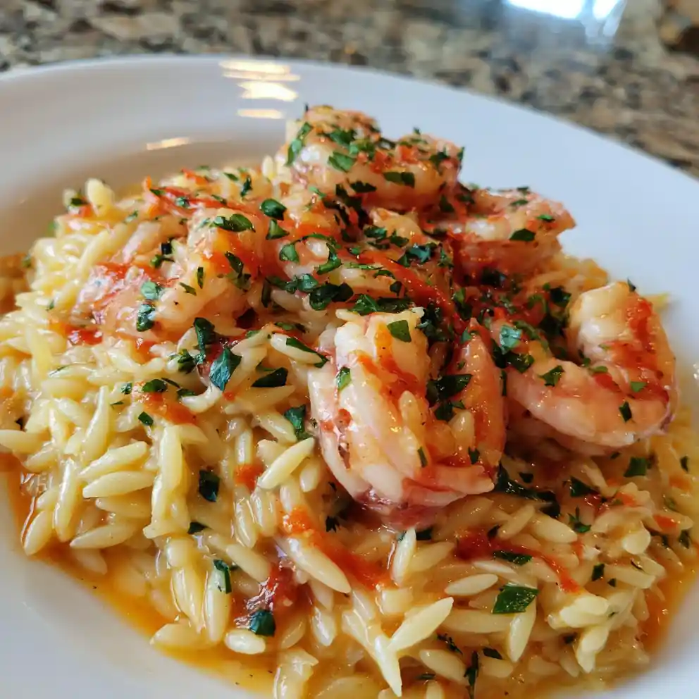 - Combine and Coat: Return shrimp to sauce, add orzo, and toss to coat.