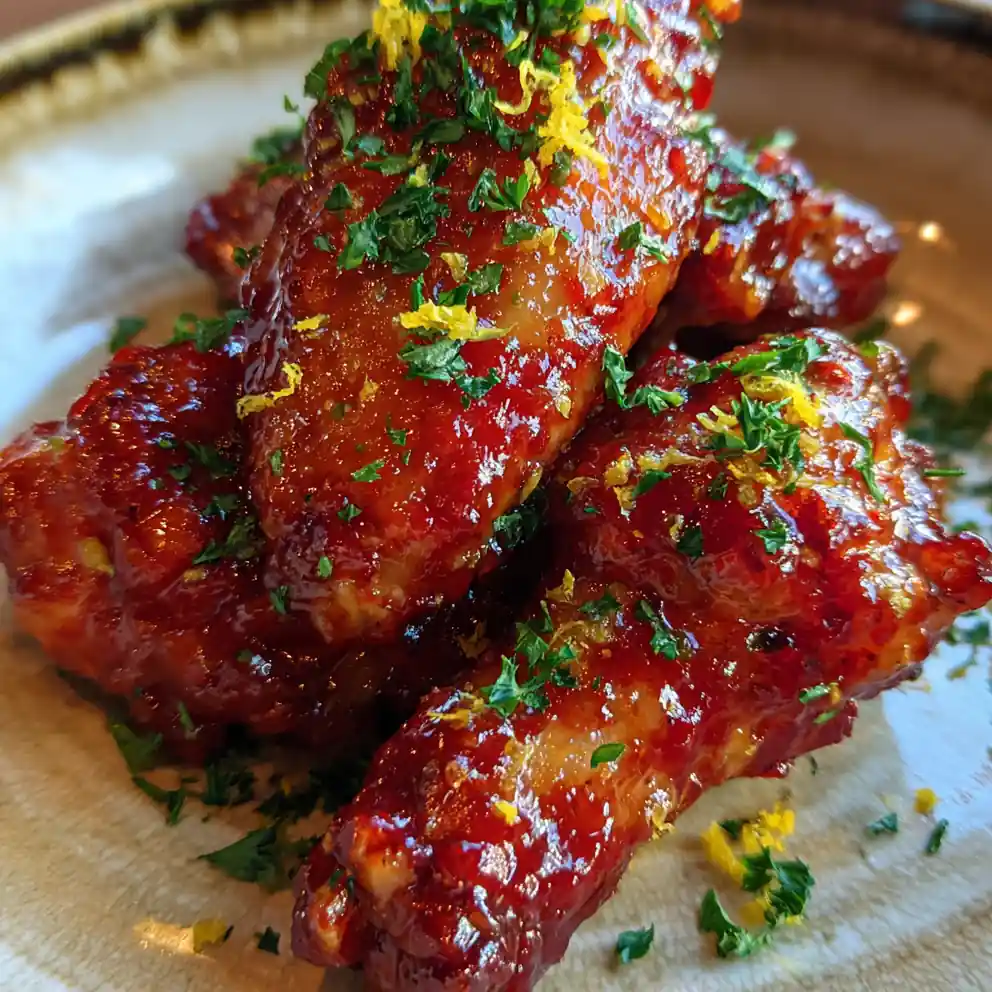 - Toss and Garnish: Once the wings are cooked and crispy, transfer them to a large clean bowl. Pour the warm Spicy Calabrian Glaze over the wings and toss gently until every wing is thoroughly coated and glistening. For serving, finish with a generous sprinkle of freshly grated lemon zest and finely chopped fresh parsley.