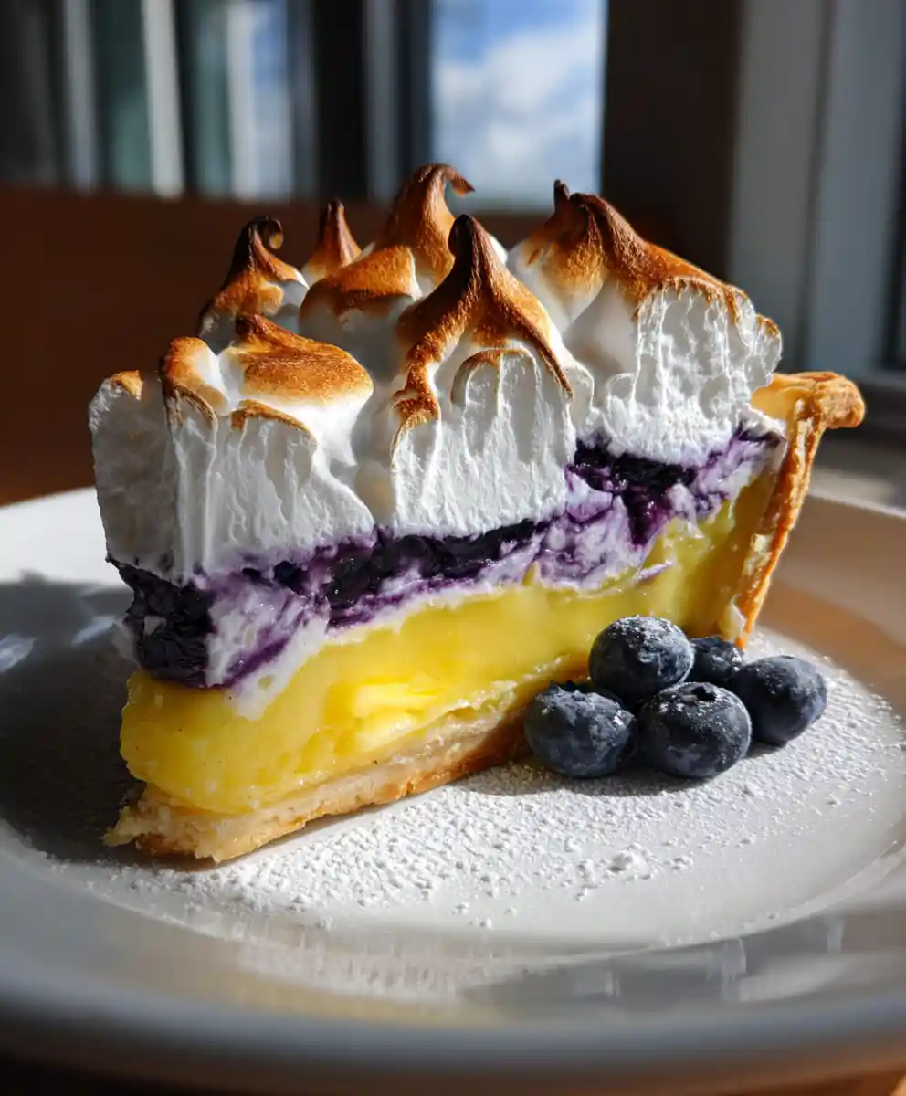 This showstopping dessert features a tangy lemon filling infused with lavender, a vibrant blueberry swirl, and a fluffy meringue topping. The combination of flavors and flaky crust makes for a truly impressive and delicious pie.