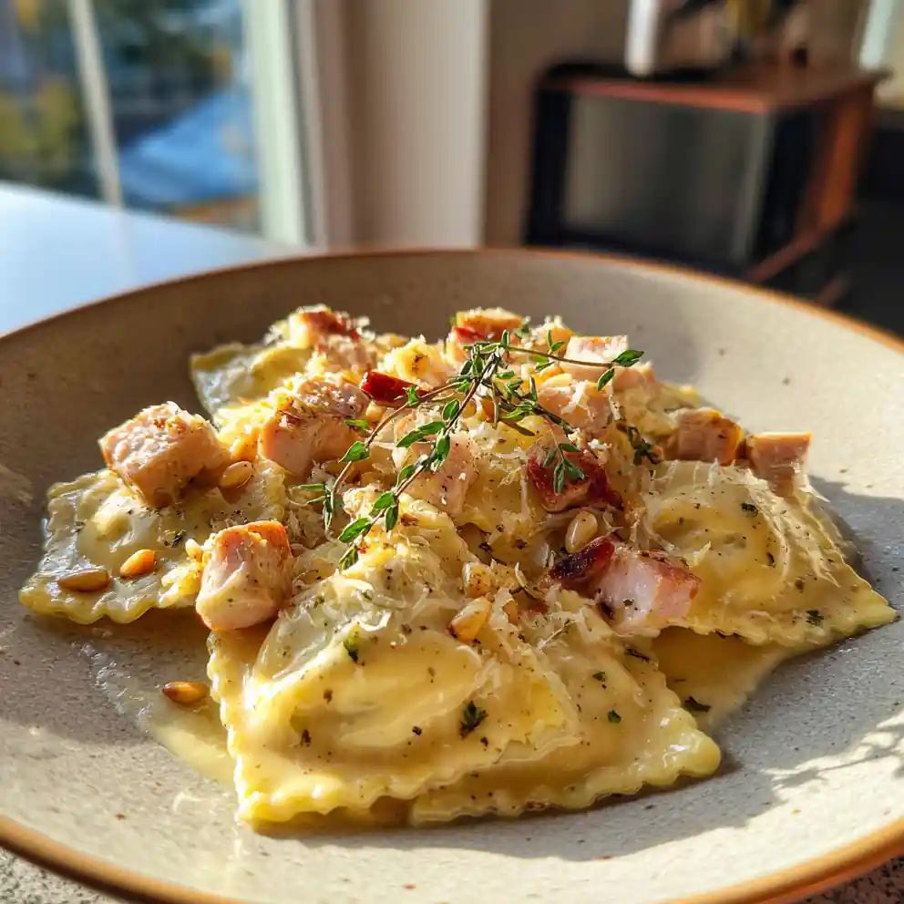 This recipe elevates classic carbonara with cheese ravioli, bright lemon, fragrant thyme, and crispy smoked turkey for a comforting yet sophisticated meal. It’s surprisingly easy to make and delivers restaurant-quality flavor.
