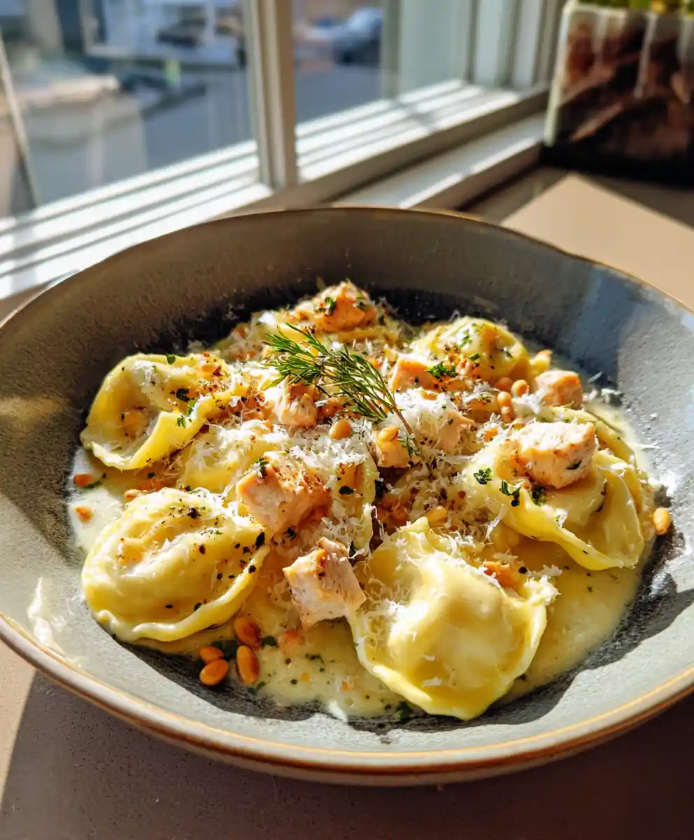 - Fold in the Turkey and Serve: Gently fold the crispy smoked turkey back into the pasta, mixing just until it’s evenly distributed. Avoid overmixing, as this can break up the ravioli. Plate the ravioli immediately in shallow bowls or wide plates, allowing the creamy sauce to pool around the noodles. Drizzle a thin ribbon of any remaining lemon-thyme sauce across the top for visual appeal.